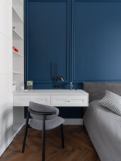 Детская комната выполнена в лаконичном стиле: продуманное рабочее место, удобные системы хранения и коллекция гитар на стене вместе с электронным фортепиано делают пространство практичным и одновременно подчеркивают индивидуальность хозяина комнаты.